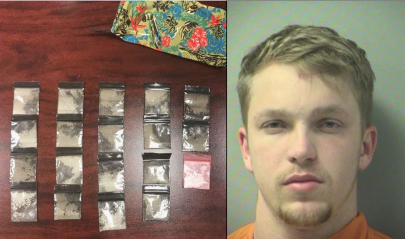 After 20-year old Joel Kinabrew of Gonzales Louisiana was arrested for underage possession of alcohol, a search revealed he also had a sunglass case packed with 19 individual baggies of cocaine in his left front pocket.