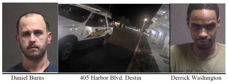 Washington struck victim Brian Lanieux of Fort Walton Beach, in the head with a handgun and also held him at gunpoint in the bathroom. The second victim, Nicholas Carasso of Destin, pulled a knife to protect himself and received a minor cut to his finger when he struggled over the knife with Washington.